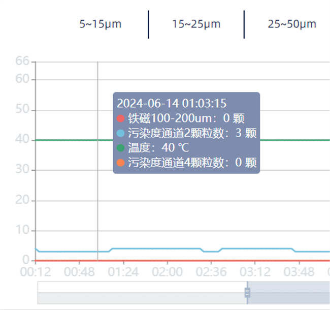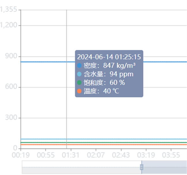 當(dāng)監(jiān)測到含水量或顆粒污染度指標(biāo)達(dá)到設(shè)定的閾值時,可發(fā)送指令給設(shè)備維護(hù)人員提示開啟油品自動凈化裝置進(jìn)行濾油。