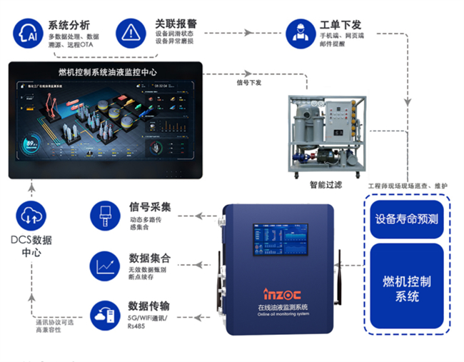 為了解決這一問題,INZOC智火柴憑借深厚的行業(yè)經(jīng)驗和強大的技術(shù)實力,研發(fā)出的這一套適用于電廠燃機控制油的油質(zhì)在線監(jiān)測系統(tǒng)。