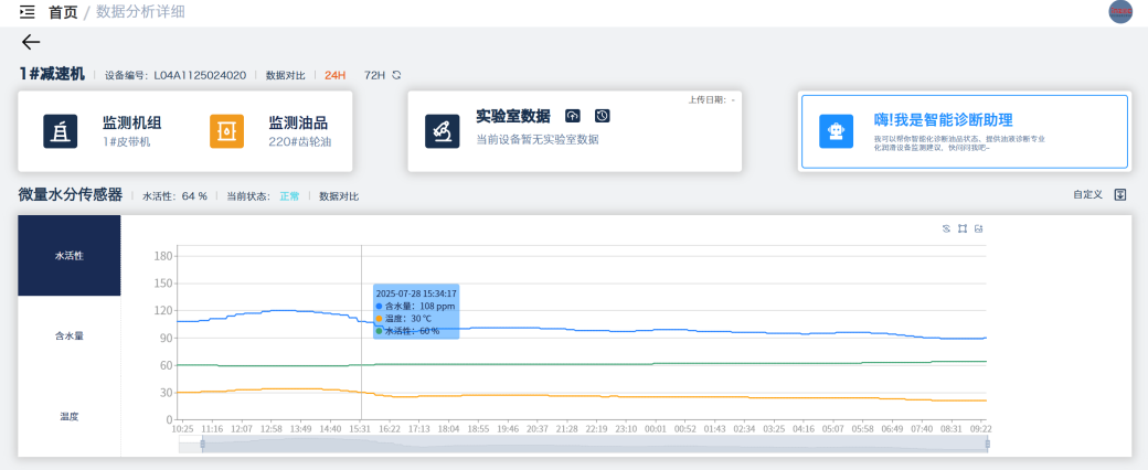 該系統集成多種傳感器模塊,具備油液粘度、水分含量、飽和度、磨損顆粒、污染度等參數的實時監測能力,適配復雜露天礦環境,實現對潤滑狀態的全面感知與智能分析。